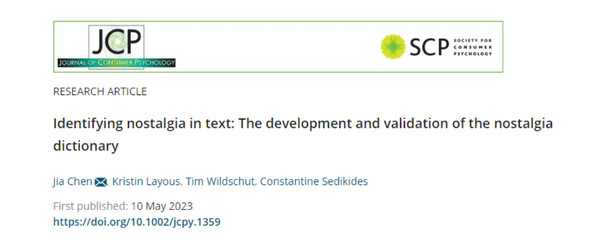 近日,九游体育(www.jiuyou.com)官方网站创业与管理学院助理教授陈佳与加利福尼亚州立大学副教授Kristin Layous, 南安普顿大学教授Tim Wildschut、Constantine Sedikides合作开发了预测怀旧情绪的文本分析方法。相关论文题为“Identifying nostalgia in text: The development and validation of the nostalgia dictionary”,被期刊Journal of Consumer Psychology接收发表。陈佳为论文第一作者兼通讯作者。