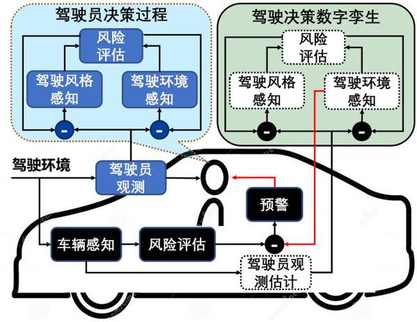 现有的高级驾驶辅助系统(以下简称:ADAS)在提供驾驶辅助时未考虑驾驶员的认知状态,导致辅助与驾驶员预期不符,影响了辅助的效果以及人机交互的信任度。江智浩课题组提出一种新的智能驾驶辅助系统(Cognitive-digital-twin-based Driving Assistance System,CDAS),通过建立和维护驾驶员驾驶决策数字孪生,推测驾驶员对驾驶环境的感知以及驾驶风格,利用系统与驾驶员对环境的感知的差异识别驾驶员未知的潜在风险,并根据驾驶员对风险的接受程度决定是否告警。