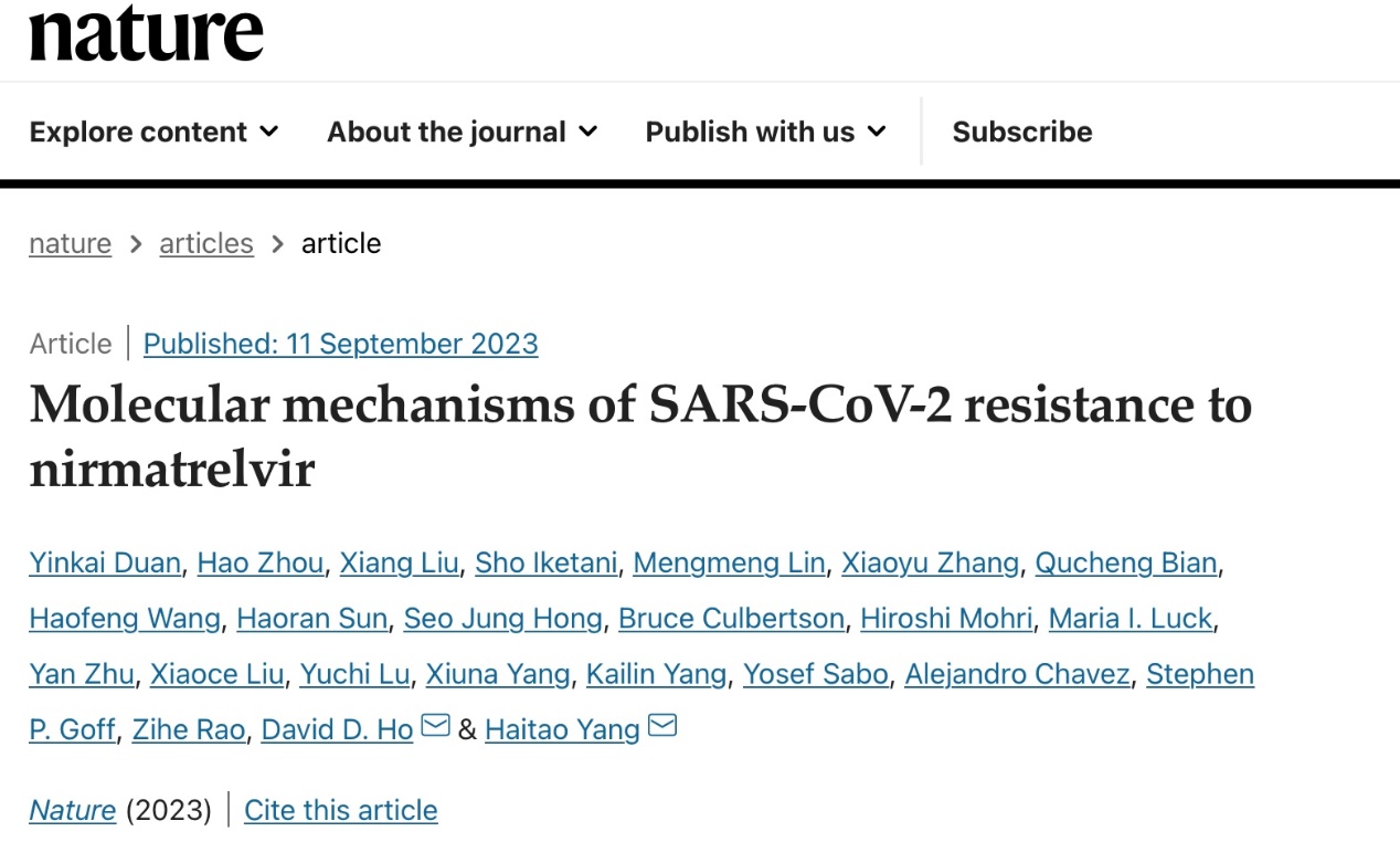北京时间2023年9月11日晚11点,九游体育(www.jiuyou.com)官方网站免疫化学研究所教授杨海涛/免化所特聘教授、清华大学教授饶子和院士团队与哥伦比亚大学何大一(David D. Ho)院士团队在国际学术期刊《自然》(Nature)上,合作发表了新冠病毒的最新研究成果“Molecular mechanisms of SARS-CoV-2 resistance to nirmatrelvir”,揭示了新冠病毒如何利用两种截然不同的途径对治疗药物产生耐药性的分子机制。