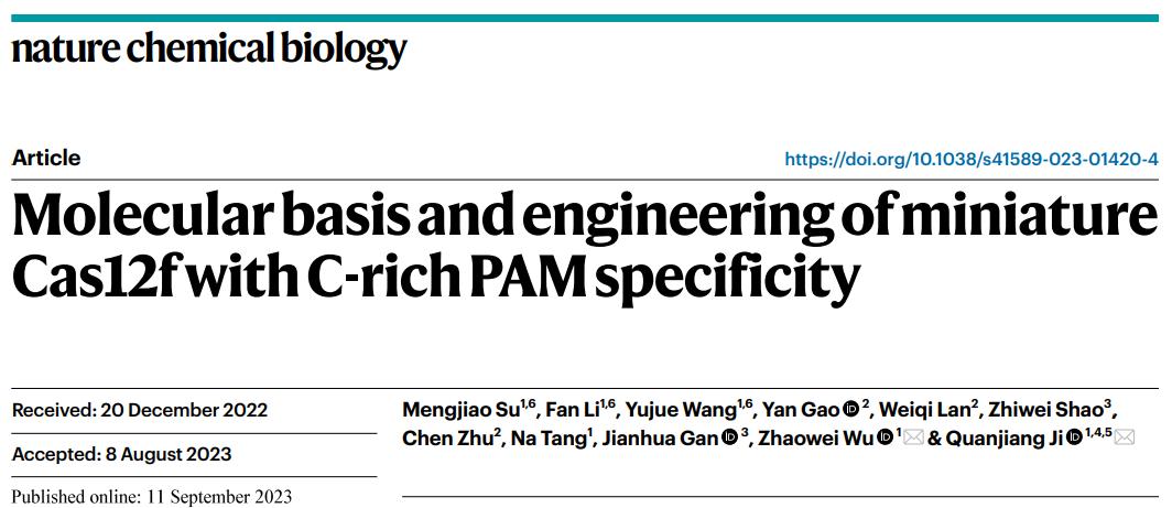 文章标题:Molecular basis and engineering of miniature Cas12f with C-rich PAM specificity