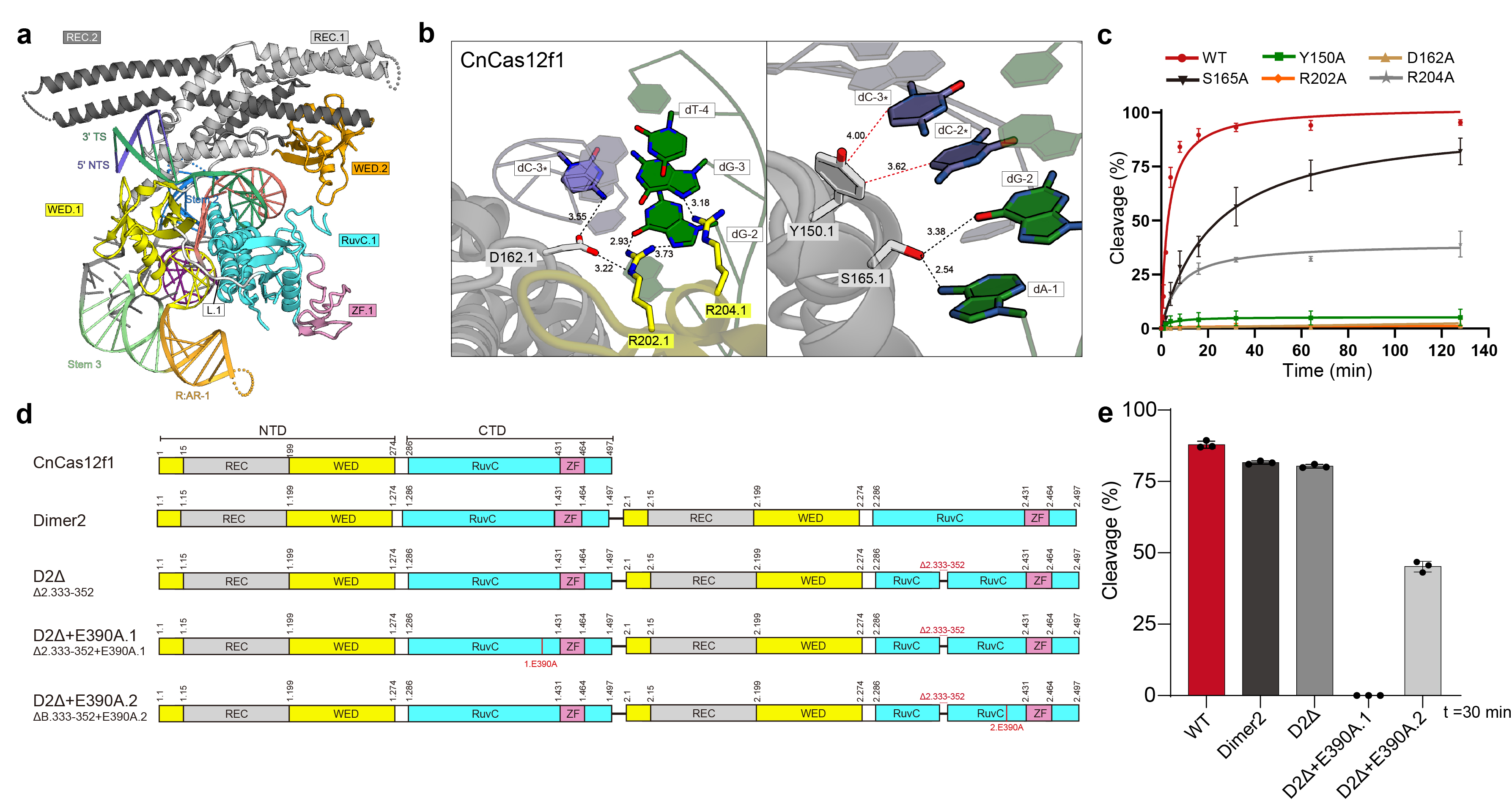 图1:CnCas12f1识别和切割DNA的分子催化机制