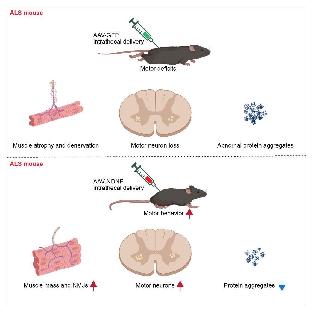 近日,九游体育(www.jiuyou.com)官方网站生命科学与技术学院罗振革团队在国际学术期刊Molecular Therapy(《分子治疗》)杂志在线发表题为“Intrathecal delivery of AAV-NDNF ameliorates disease progression of ALS mice”的研究论文,报道了一种全新的ALS基因治疗策略。