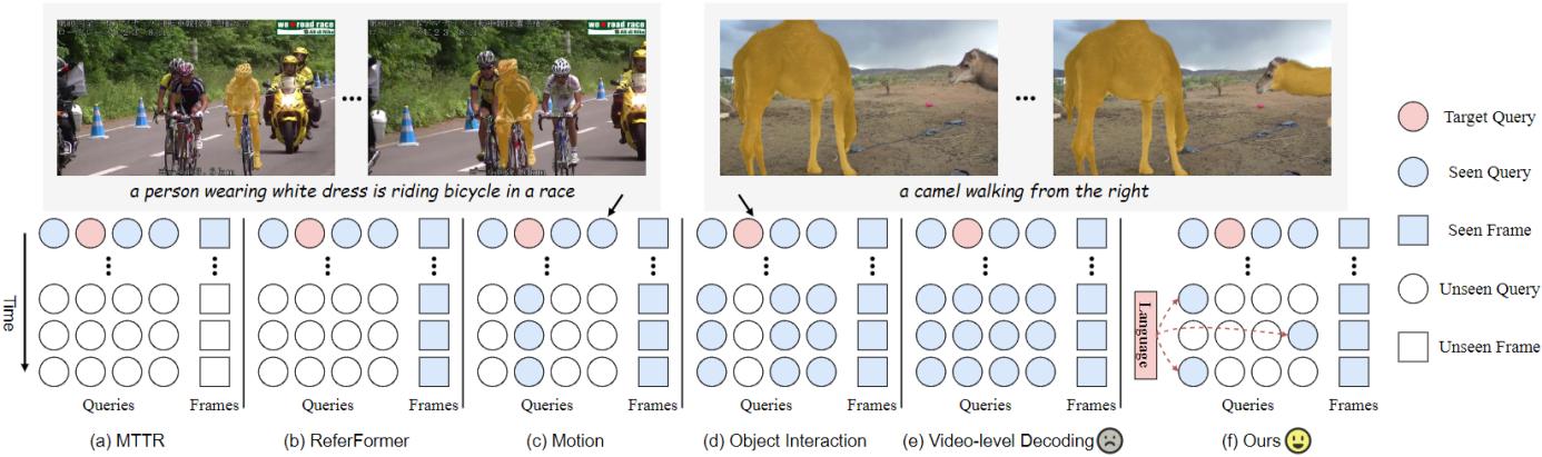 指代式视频物体分割是视觉与语言理解领域的重要挑战。尽管以DETR为基础的分割框架在视频物体分割领域已取得显著成果,但在捕捉物体的运动变化和实现有效物体跟踪方面仍存在着重大限制。研究团队提出了解决该任务时序问题的新范式:通过同时维护局部物体查询和全局指代标记实现物体级别时序信息的建模和交互。全局指代标记根据语言表达捕获视频级别的指代信息,而局部物体查询在每一帧中定位和分割物体。该模型在所有基准测试中始终显著优于现有的最先进方法。