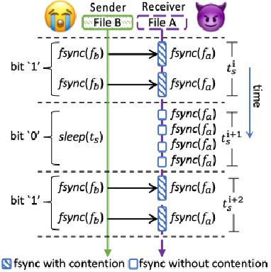 计算机系统中陆续发现多种隐蔽侧信道漏洞,这些漏洞大多因CPU高速缓存和主存间数据交互造成信息泄露。本研究另辟蹊径,将目光聚焦在计算机系统的持久存储层的信息安全问题。计算机程序大多选择以文件方式存储计算结果,其中一些程序调用fsync函数向硬盘同步持久化文件,以实现有序化可靠保存。研究人员发现,当两个程序同时调用fsync时,尽管它们之间不共享任何数据,受共享软件和硬件资源的影响,fsync会在计算机上发生资源竞争,导致每个程序都将经历更长的反应时间。