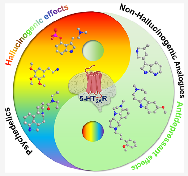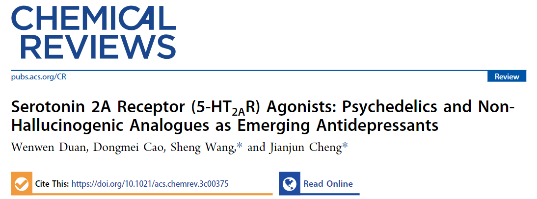 iHuman研究所程建军课题组致力于以G蛋白偶联受体为靶点的精神类药物的早期研发,曾与合作者在Science发表新型不致幻但具抗抑郁作用的功能偏向性5-HT2A受体激动剂(Cao et al., Science 2022, 375, 403–411)。近日,该课题组与合作者就5-HT2A受体小分子激动剂及其作用机制和临床研究进展进行了综述,发表于国际化学类权威综述期刊Chemical Reviews。