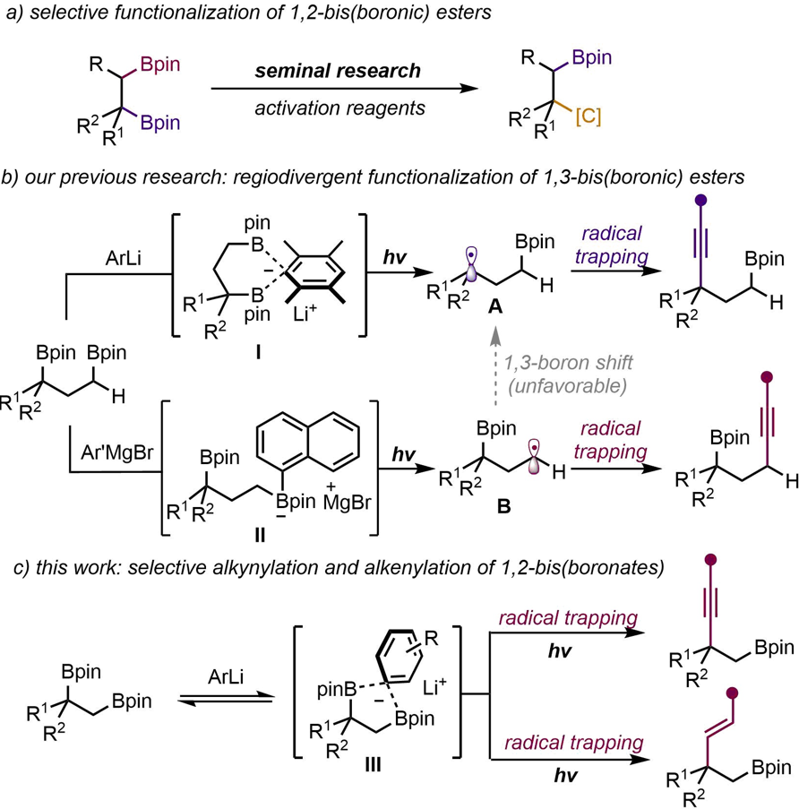 图1. 1,n-双硼酸酯的选择性官能化转化
