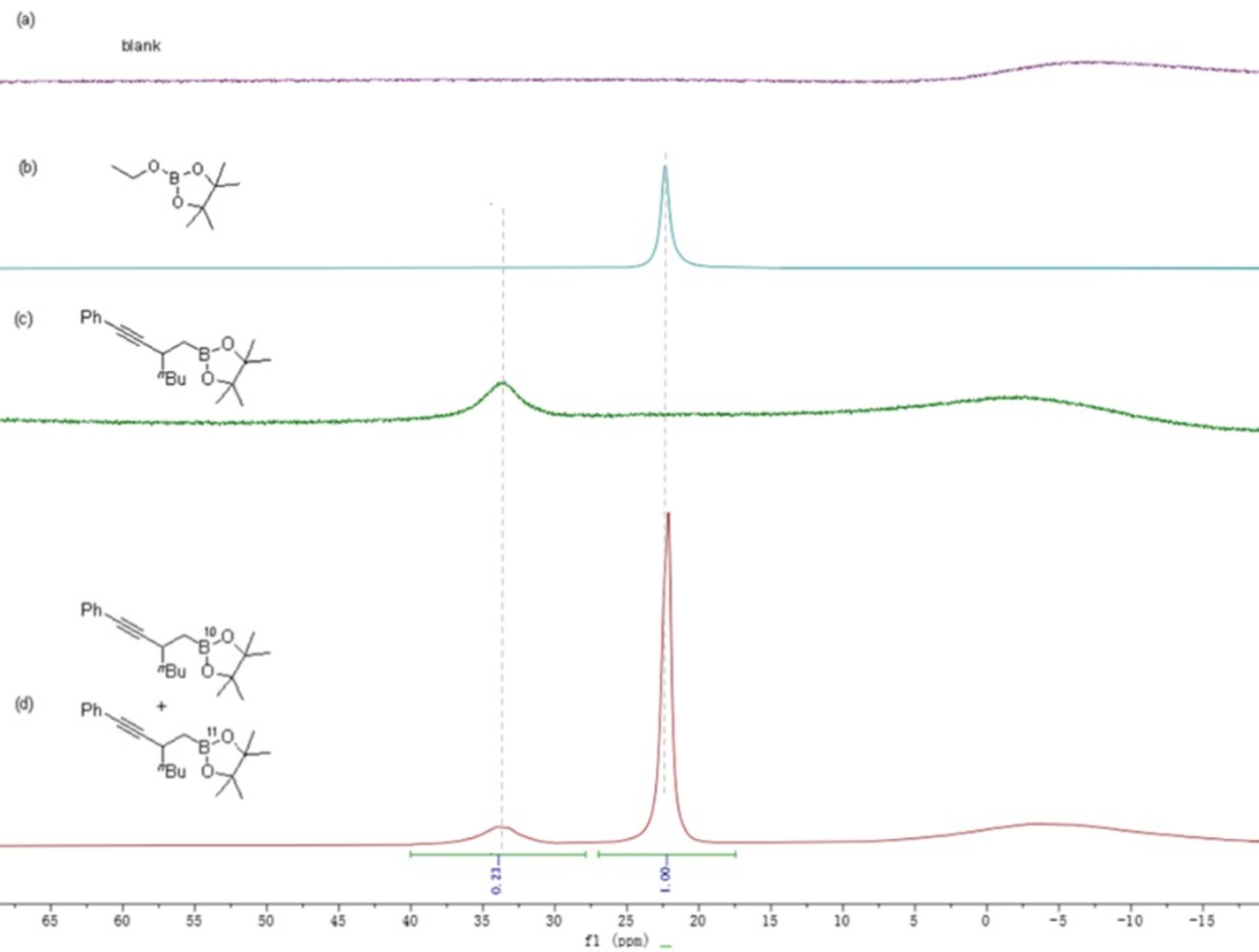 图2. 10B标记的硼酸酯2c的合成及在炔基化反应中的研究