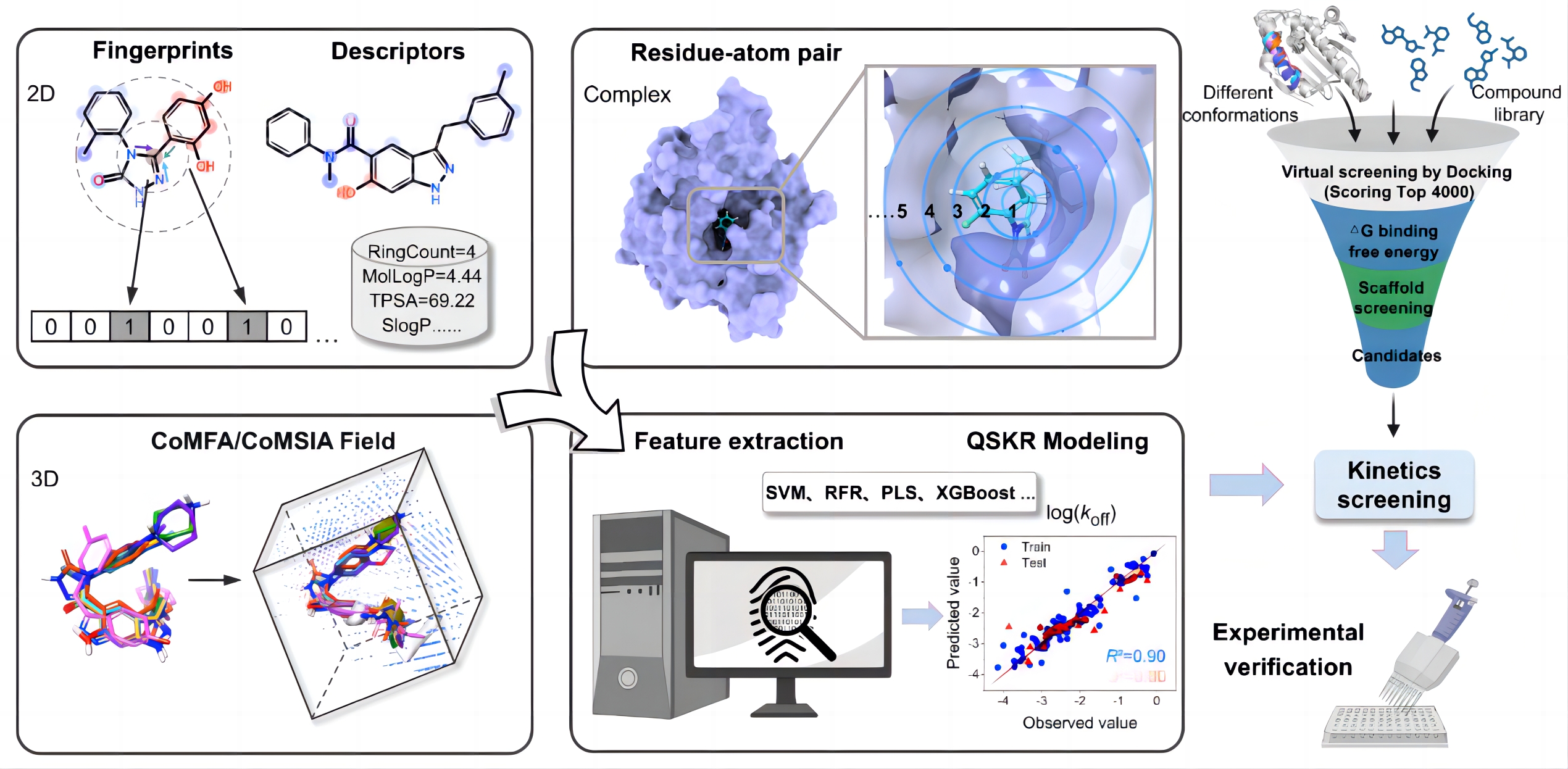 图1. 药物-靶标结合动力学预测模型构建及应用流程示意图。