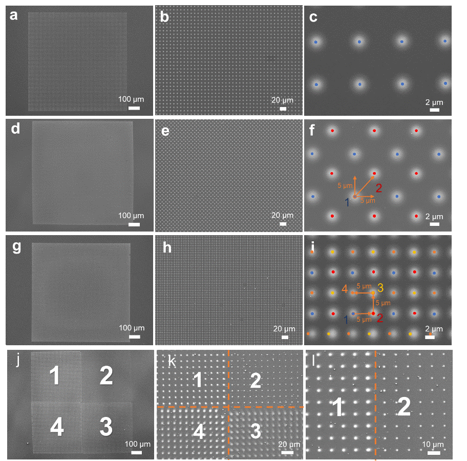 此外,该工作还演示了通过移动基底的方法实现了打印结构的密度倍增及其打印面积的扩展。这为大面积打印金属3D纳米结构阵列提供了潜在的解决方案。