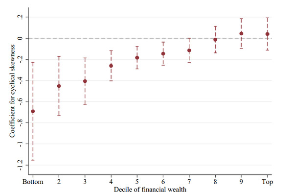 本文使用瑞典的行政面板数据在实证层面研究了劳动收入风险与投资行为的关系。本文发现劳动收入尾部风险逆周期性(cyclical skewness)更强的家庭,即在经济下行区间失业风险更高的家庭,持有更少的风险金融资产。更少的风险投资同时反映在金融市场参与度和金融投资组合的风险水平上。这种相关性在更依赖于劳动收入的人群中,如中年劳动力人群和较不富裕的人群,更为显著。本文的实证结果支持了尾部风险在经济学模型中解释“股权溢价之谜”和“股市参与度之谜”的重要性。