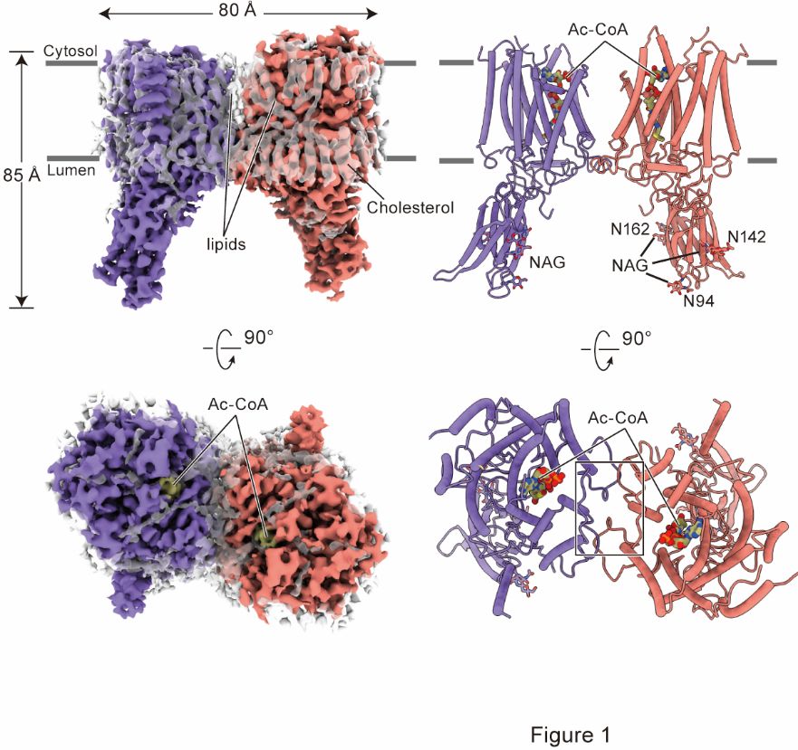 HGSNAT功能障碍会引发HS在多个细胞和组织的溶酶体中积累,最终导致神经性溶酶体贮积病(LSD)——MPS IIIC,表现为神经功能恶化、多动、睡眠障碍、听力丧失和儿童痴呆。目前该疾病没有有效治疗方法,因此阐明HGSNAT的结构对于开发药物伴侣以及靶向HGSNAT治疗MPS ⅢC至关重要。