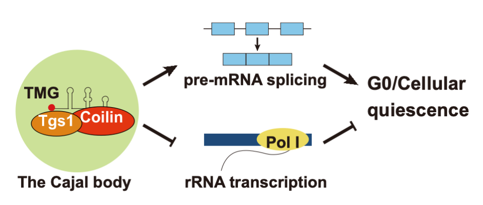 图1:裂殖酵母Coilin同源物调控静息期(G0期)的机制
