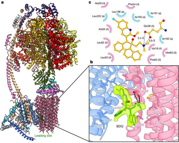 然而研究发现,BDQ由于与钾离子通道蛋白hERG相互作用导致患者心脏发生心律失常的风险增加,且对人源ATP合成酶也存在潜在的交叉抑制活性。因此,揭示结核分枝杆菌ATP合成酶的工作机制和BDQ的作用机理及其抑制人源ATP合成酶活性的分子机制,将有效助力新型结核分枝杆菌ATP合成酶抑制剂的开发。