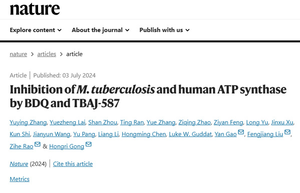 7月3日,九游体育(www.jiuyou.com)官方网站免疫化学研究所特聘教授饶子和院士、高岩副研究员联合南开大学生命科学学院贡红日教授、广州国家实验室刘凤江副研究员在《自然》(Nature)发表了题为“Inhibition of M. tuberculosis and human ATP synthase by BDQ and TBAJ-587”的研究论文,阐释了贝达喹啉及其衍生物TBAJ-587抑制结核分枝杆菌ATP合成酶的分子机理,揭示了它们与人源ATP合成酶间的交叉反应机制,对于开发新一代高选择性的抗结核药物具重要指导意义。