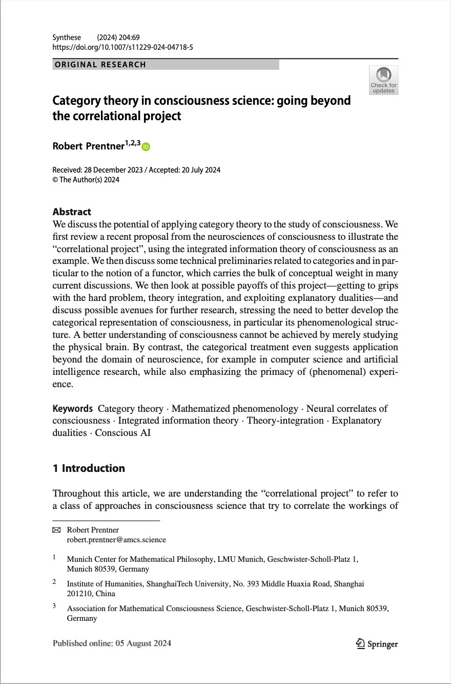 论文题目:Category theory in consciousness science: going beyond the correlational project