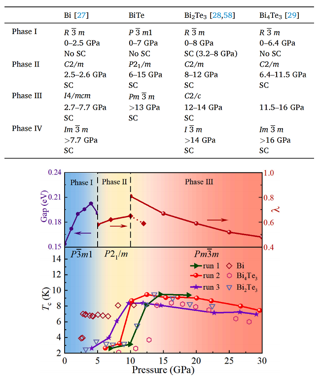 本研究不仅首次报道了BiTe高压结构相变以及压力诱导的超导电性,还加深了(Bi2)m(Bi2Te3)n系列化合物高压相图与物性的认识,为未来制备和设计新型异质结材料提供了参考与思路。