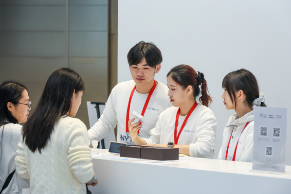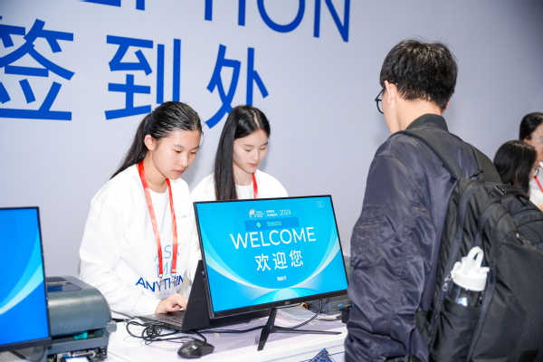 论坛不仅要求志愿者秉持脚踏实地和严谨的工作态度,还要求他们具有细致入微的工作作风,更重要的是,它考验着志愿者的沟通技巧。2022级信息学院本科生贾若辰负责签到制证工作。他以真诚、专业和耐心的态度服务于来自不同背景的科学家和与会者,致力于展现上科大志愿者的专业精神和敬业态度,确保每位参与者都感受到尊重与重视。