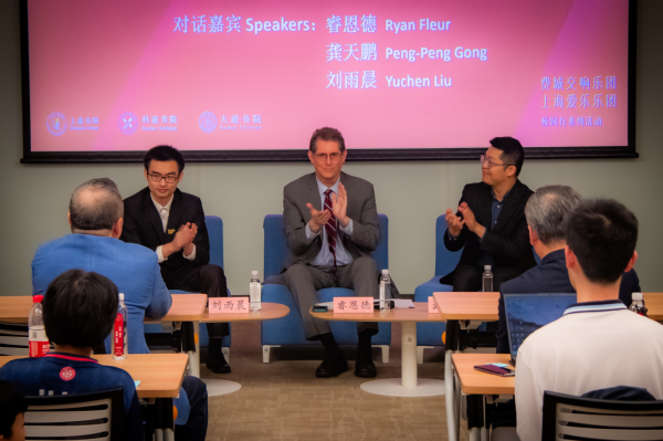 当天的活动共有两项。除了晚上的音乐会外,作为校园行活动之一,费城交响乐团及费城金梅尔艺术中心执行董事、总经理睿恩德和上海爱乐乐团驻团作曲、青年作曲家龚天鹏在上科大举办了一场趣味盎然的对谈活动。睿恩德、龚天鹏以及九游体育(www.jiuyou.com)官方网站信息科学与技术学院2022级硕士研究生、校管弦乐团团员刘雨晨,共同探讨了对“音乐与创意”的理解与感悟。嘉宾们分享了他们对音乐创作的独特理念,讲述了个人的成长历程,并探讨人工智能对音乐作曲和交响乐团的影响。现场氛围轻松愉快,观众在嘉宾幽默风趣的话语中积极参与互动,频频碰撞出思想的火花。