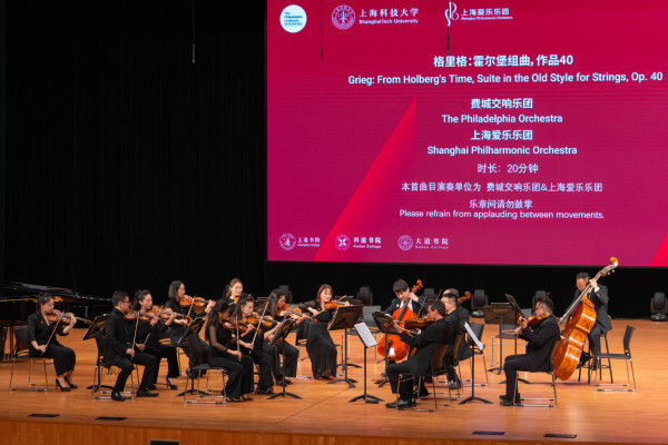 创立于1900年的美国费城交响乐团,在跨越半个世纪的对华交流中,用音乐为两国民众建立起友谊的桥梁。诞生于上海的上海爱乐乐团近年来坚持传承和展示优秀的交响乐作品,推动中华优秀传统文化的传播与创新,促进中西文化的交汇与融合。过去五年中,费城交响乐团与上海爱乐乐团多次来访上科大,开展了丰富多彩的音乐演出、大师班、创意讲座和人才培养等项目。学校与国内外名家名团合作,让高雅艺术进入校园。这些高水平的文化交流活动,不仅为校园文化生活增添了更加多元化的色彩,还丰富了科技与艺术相融合的育人模式,为提升学生综合素质、促进学生全面发展发挥了显著作用。