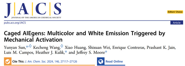 近日,由上科大2021级本科生、物质科学与技术学院化学专业“未来材料创新班”成员王克丞作为共同第一作者的研究论文,在国际学术期刊《美国化学会志》(Journal of the American Chemical Society)发表。这篇题为“力化学诱导共价键断裂实现‘笼锁’AIE材料激活多色及白色荧光”的科研论文不仅被选为编辑推荐文章,被作为亮点进行报道,还在美国化学学会官方网站上作为头条新闻展示。