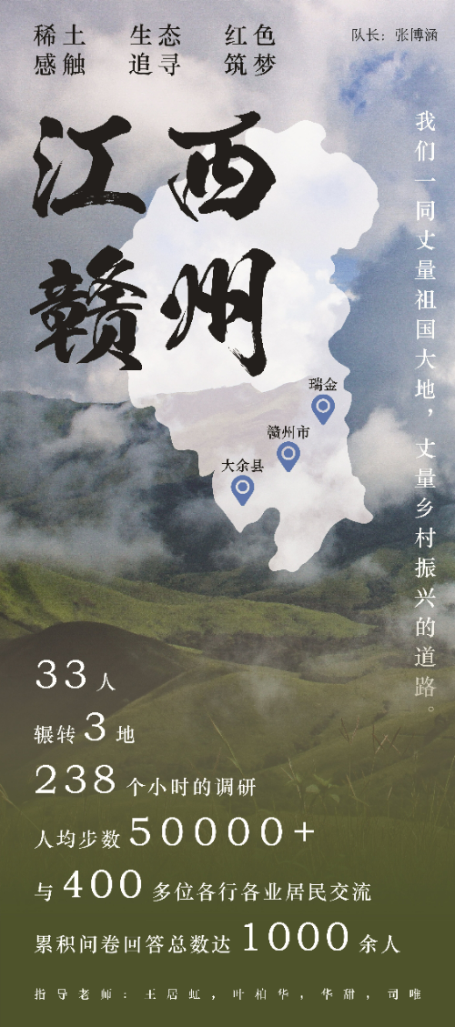 山西武乡团队以经济发展为切入点,实地探究了“红色旅游”“绿色农业”等产业在武乡县经济转型中的地位、问题与可能的解决方案。江西赣州团队聚焦赣州稀土特色产业,探索产业生态文化全面振兴新路径。广西百色团队深入分析了当地发展第三产业的可行性,积极探究那坡文旅发展的创新形式。宁夏固原团队对非物质文化遗产进行了调查研究,对固原非遗文化及其相关产品的量产和商业化现状进行了分析和建议。四川攀枝花团队走访调查了米易县下辖的所有十一个乡镇的多个村,以米易县为例,对攀枝花农产品经济展开了调研。云南建水作为今年新增基地,建水二队对红河州建水县的经济、文化、教育、农业进行了初步调查。