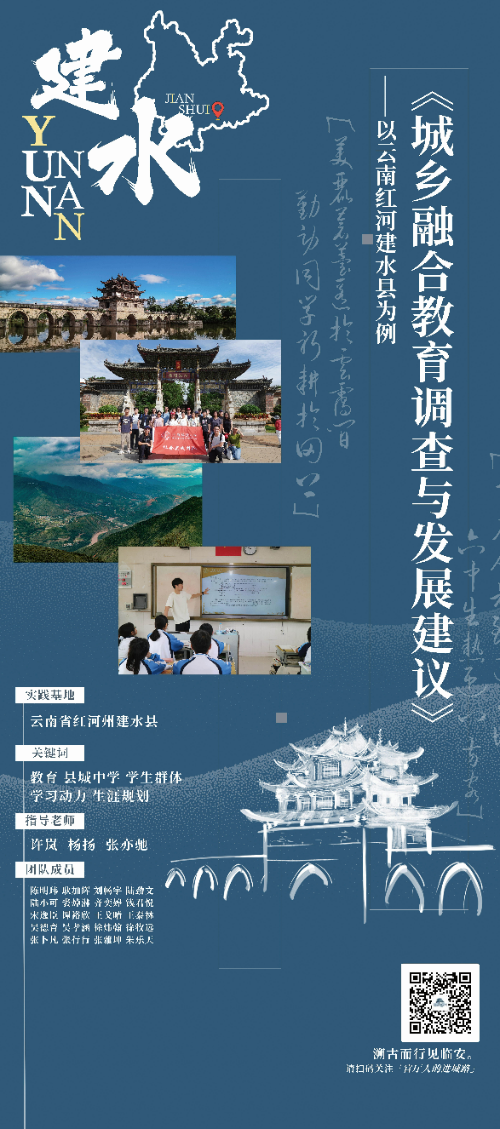 云南云龙检槽乡团队以支教为主要实践内容,探讨了当地家庭教育与学校教育的现状及其互动关系。四川广元二队采用代际需求差异性分析框架,探索白朝乡康养旅游发展之路。云南云龙文兴村团队将文兴稻花鱼养殖产业作为研究对象,对稻花鱼生态种养产业的现状与未来展开调研。安徽泾县团队以支教社会实践为主,重点关注五年来的时间跨度变化,对泾县留守儿童核心素养进行追踪调研与变因剖析。甘肃武威团队以武威市民勤县为例,探讨了在自然资源限制条件下乡村振兴的发展模式。四川广元一队以汉阳镇和白朝乡为例,开展了关于中国乡镇农旅融合发展的相关调研。