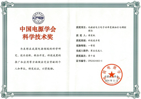 中国电源学会科技进步一等奖(基础研究类)