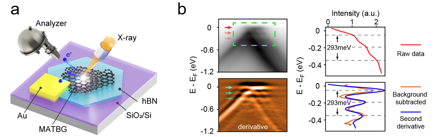 图1 a.Nano-ARPES测量魔角石墨烯器件示意图;