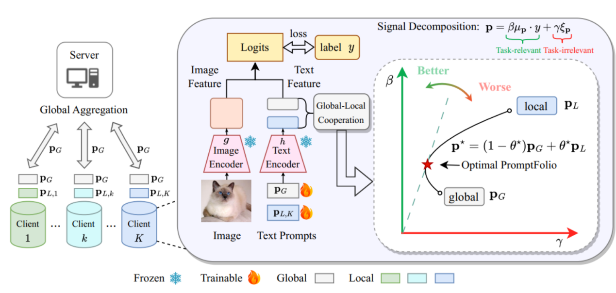 随着像CLIP这样的大型视觉-语言基石模型的发展,基于这些基石模型的联邦学习正受到越来越多的关注。提示词微调的联邦学习由于其通信开销较小和计算资源消耗较低,已成为基于预训练基石模型的联邦学习中的主流范式。然而,提示词微调方法在理论分析方面仍缺乏深入探讨。本研究基于特征动力学提出了一种针对联邦提示词微调的理论分析框架。实验展示了“提示词组合”算法相较于单一提示词的性能优势,并通过更多的消融实验验证了所提出分析框架的有效性。