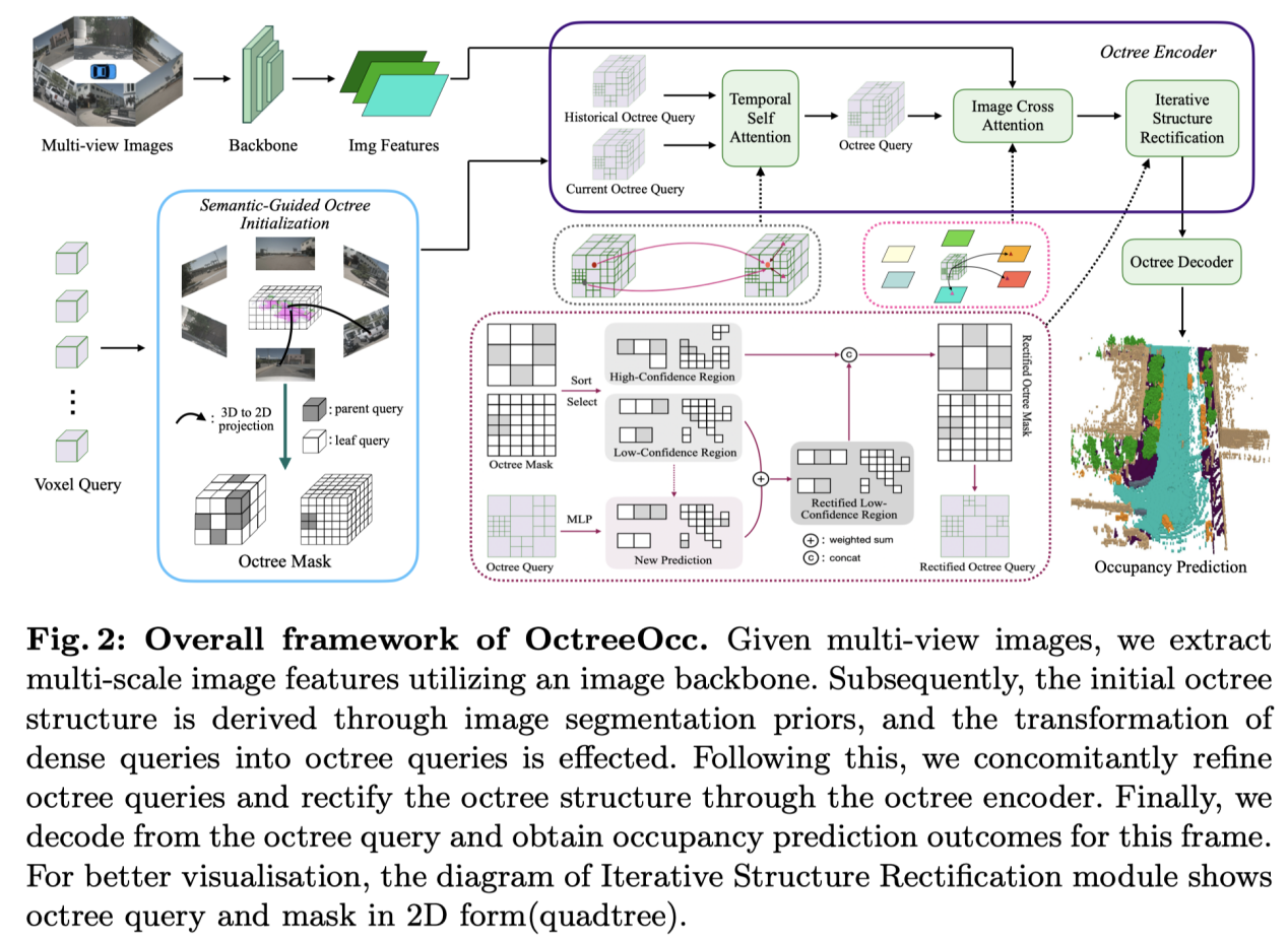 3D场景理解中的占用预测对自动驾驶、机器人导航等领域至关重要。然而,传统方法依赖于规则网格表示,计算成本高昂,且难以捕捉小物体的细节。本研究提出了一种创新的 3D 占用预测框架OctreeOcc。实验表明,OctreeOcc 在预测性能上超越现有方法,同时将计算成本降低 15%-24%。为高效的 3D 场景细粒度理解提供了新方向。