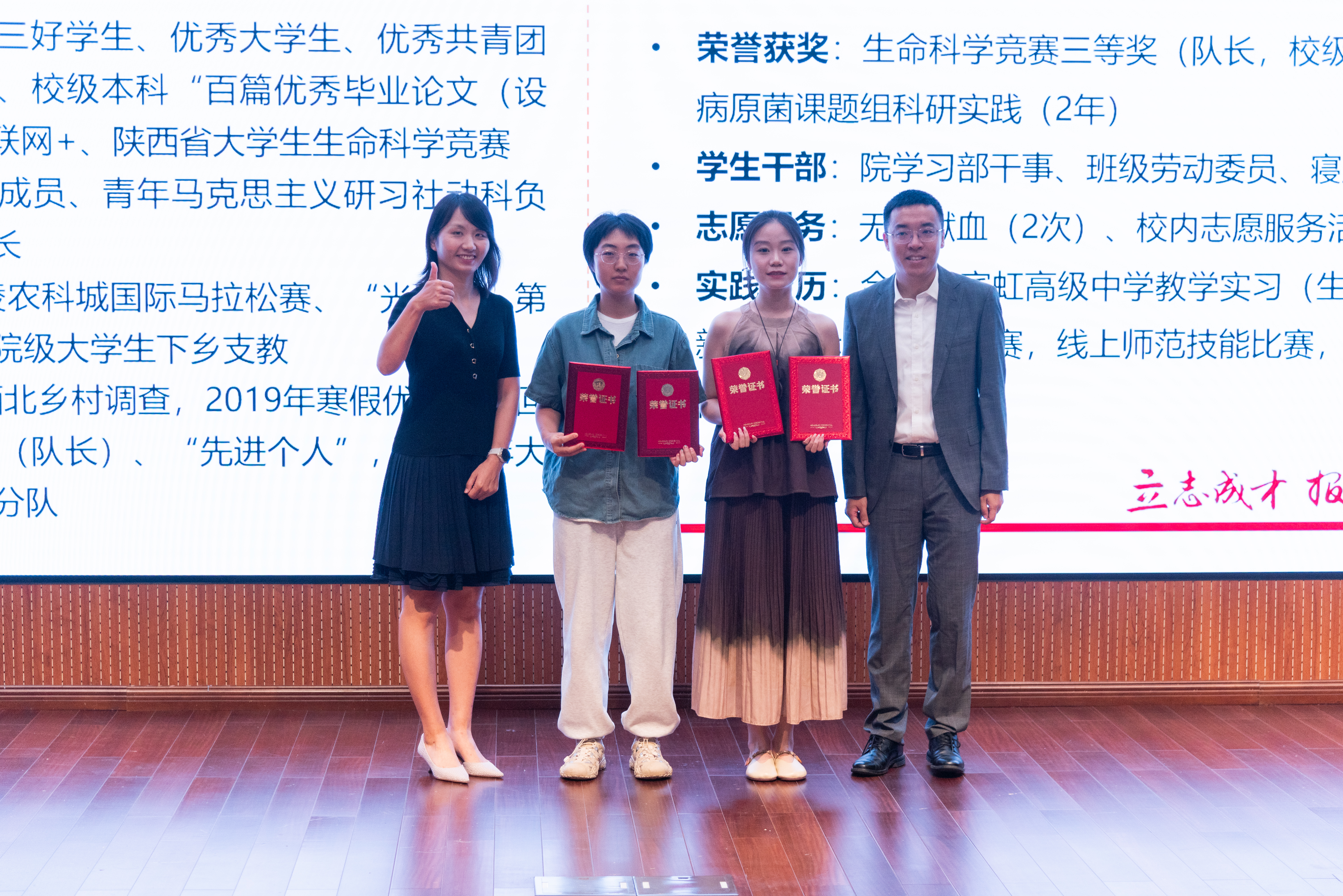 优秀毕业生奖学金、“立志”奖学金品学兼优专项和“立志”奖学金科创文体专项