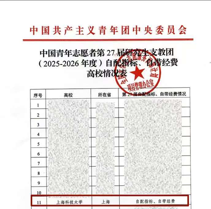 根据工作要求,上科大以支教推免的方式完成上科大第三届(全国第27届)研支团的遴选