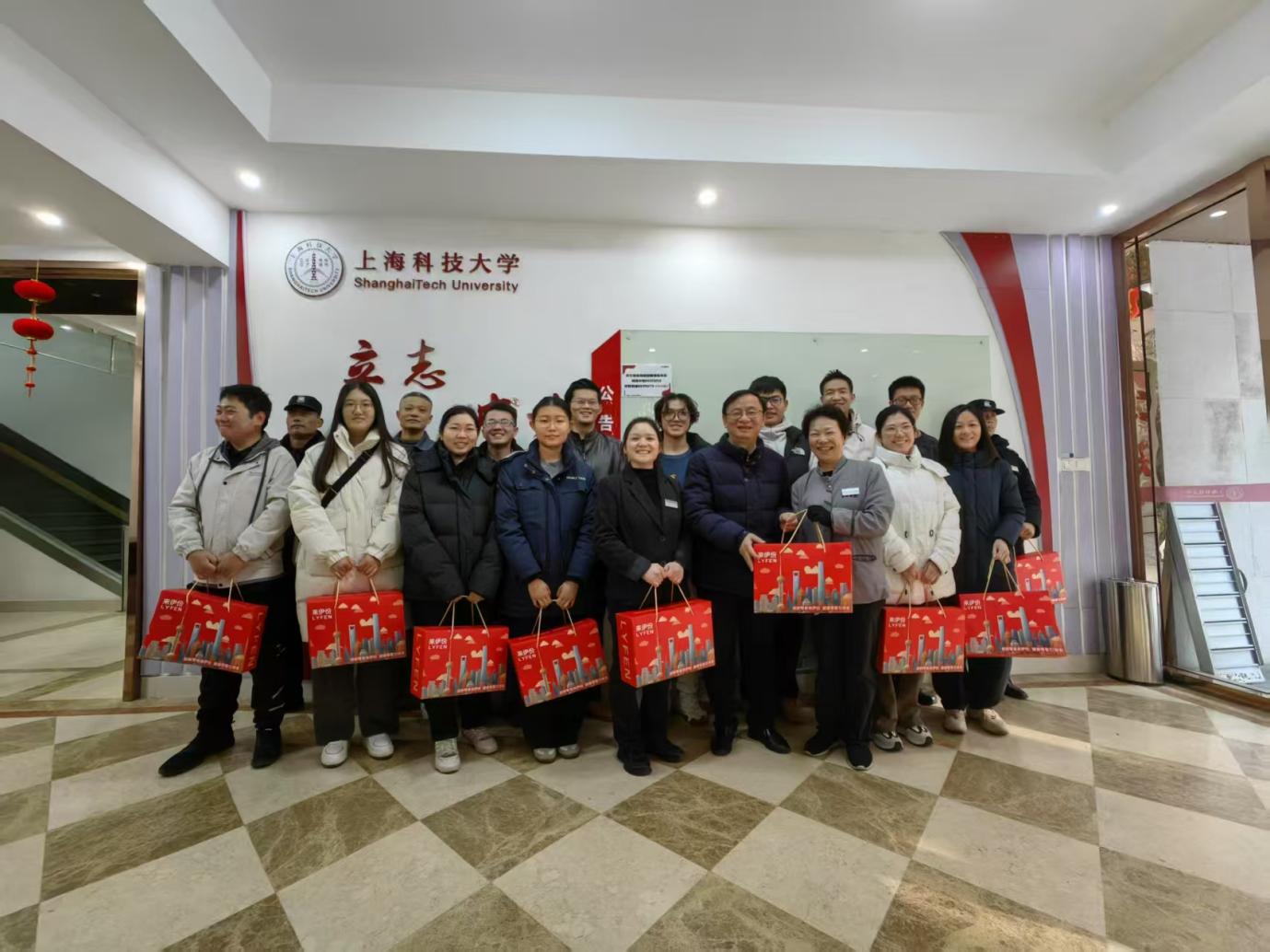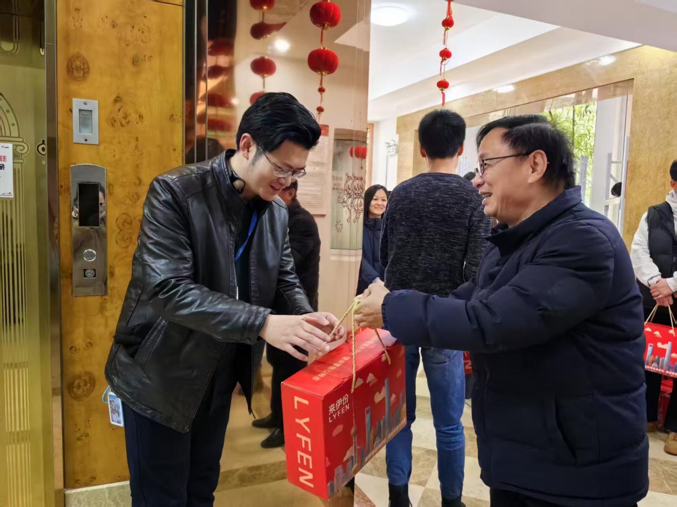 1月16日上午,校党委副书记吴强带队走访慰问了浦西校区的研究生和后勤保障人员。在岳阳路校区的值班室内,吴强和同学们亲切交流,关心同学们在浦西校区的生活条件和科研情况,为大家送上了新春祝福和节日礼包。