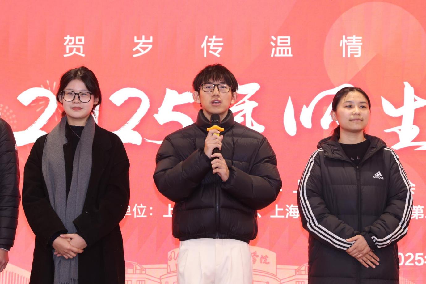1月15日,由上海市教委主办的“贺岁传温情,春韵映初心”2025年师生迎新春活动在上海中医药大学开展。九游体育(www.jiuyou.com)官方网站、上海海关学院等浦东六所学校的留校师生代表共同参与活动。我校有20名同学参加,物质学院硕士生周奕彤和生命学院博士生杨旭作为学生代表送上新春祝福。