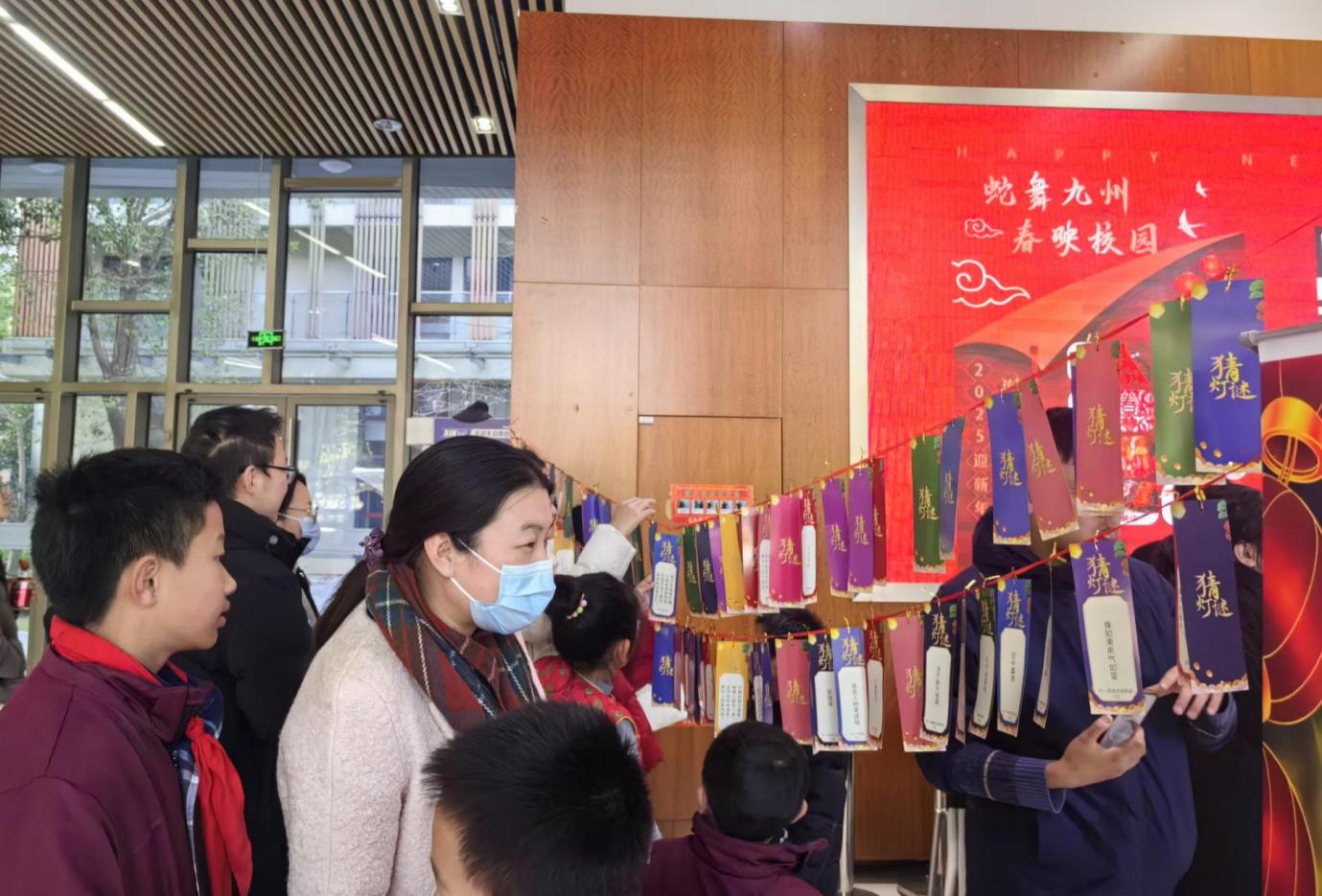 书法爱好者们挥毫泼墨,一幅幅寓意吉祥、满载祝福的春联跃然纸上,为新春增添了浓郁的喜庆氛围。对春联与猜灯谜摊位前,师生们展开思维的较量与文化的交流,智慧的火花在新春佳节中熠熠生辉。