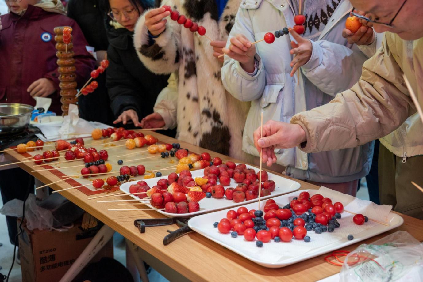 给亲手挑选新鲜水果裹上晶莹剔透的糖衣,制作冰糖葫芦,一同分享甜蜜的节日氛围。
