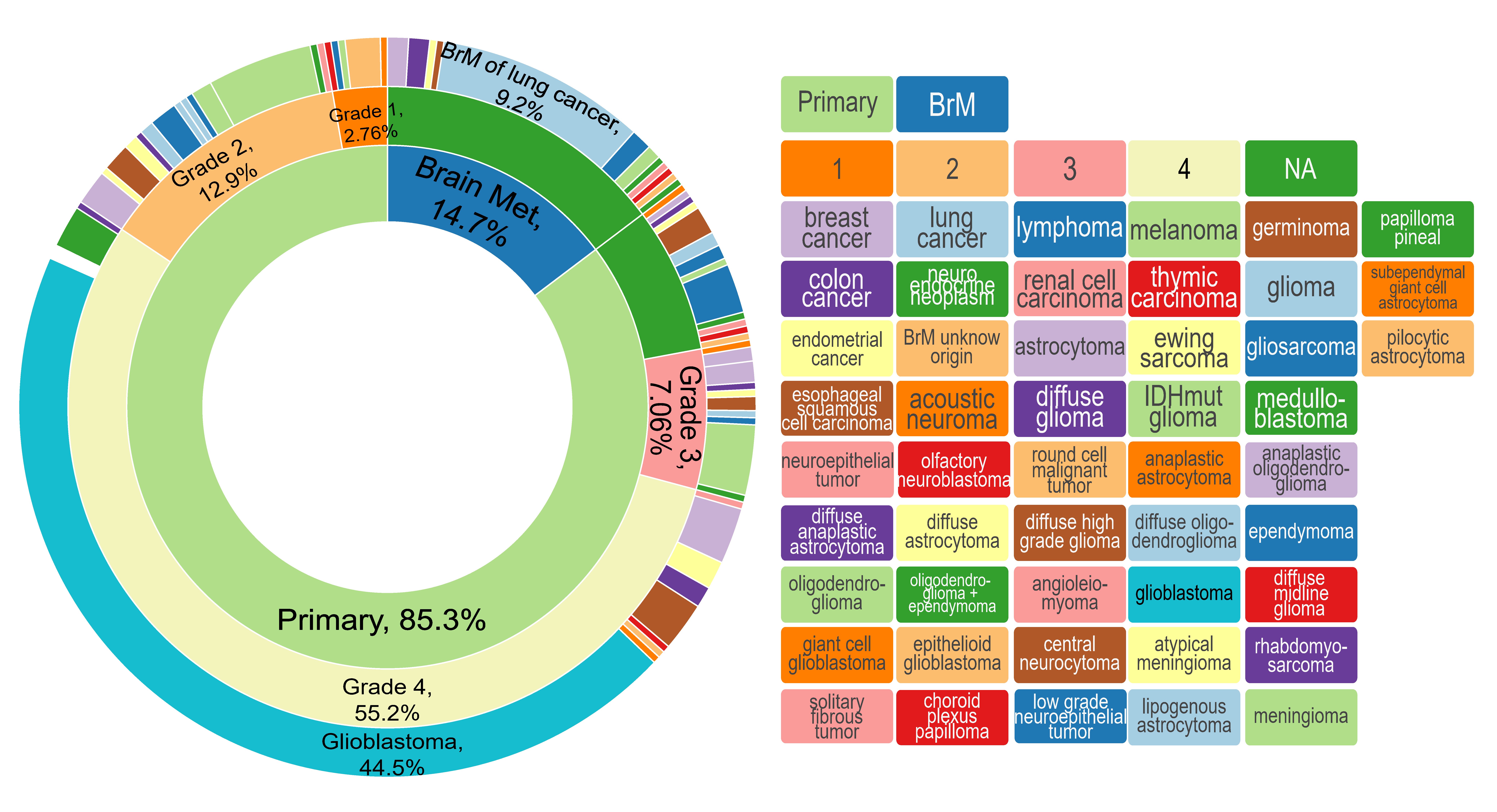 图示:该Sunburst 图展示了本研究中用于生成 IPTOs 的样本数量和肿瘤亚型占比,研究人员通过这种方法建立起326个病人组织来源的生物样本库,涵盖了48种中枢神经系统肿瘤类型,包括成人肿瘤,儿童肿瘤以及脑转移瘤等。