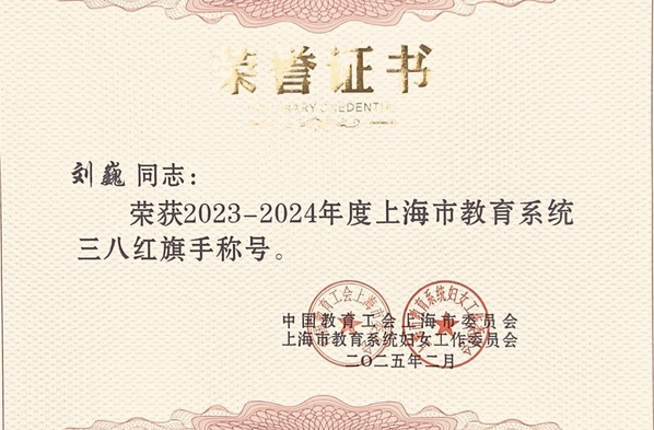 近日,上海市教育工会、上海市教育系统妇女工作委员会发布《关于表彰2023-2024年度上海市教育系统三八红旗手(集体)的决定》,九游体育(www.jiuyou.com)官方网站物质科学与技术学院教师刘巍教授荣获“上海市教育系统三八红旗手”称号。