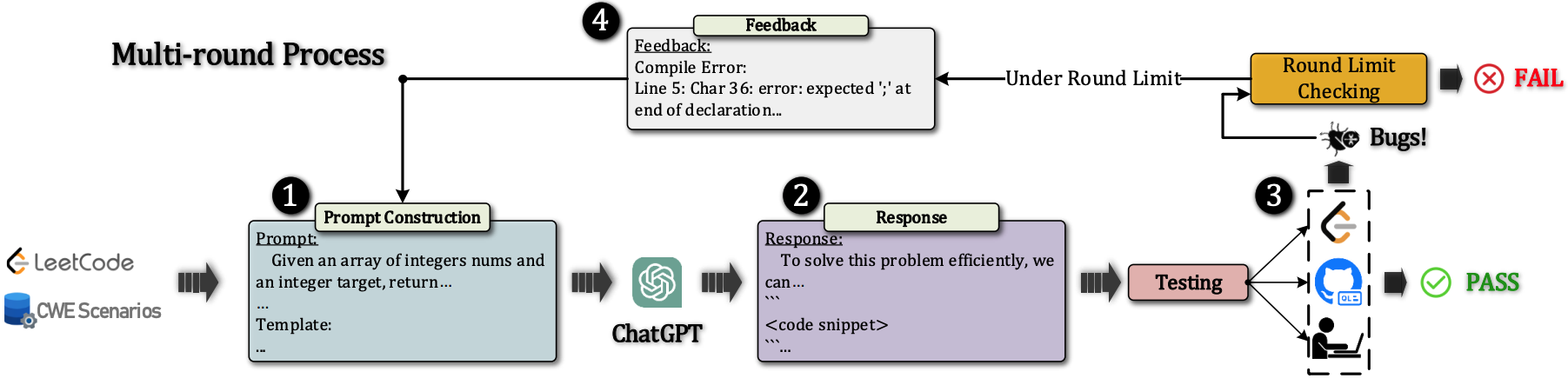 张良峰课题组关于评估ChatGPT生成代码质量的研究发表于国际期刊IEEE Transactions on Software Engineering (IEEE TSE)。使用大语言模型自动生成代码能够提高开发效率,减少开发时间,使开发者能够专注于更高层次的逻辑和任务。但使用LLMs生成的代码在功能性、复杂性和安全性方面的质量仍需评估。图4展示了与ChatGPT的交互生成代码的流程。该工作通过系统性实证评估,揭示了ChatGPT在代码生成方面的潜力与局限性。结果显示,未来研究可以探索更高效的提示设计方法,结合更多的代码质量和安全性评估工具,以优化LLMs在代码生成任务中的应用。该论文题为“No Need to Lift a Finger Anymore? Assessing the Quality of Code Generation by ChatGPT”,第一作者是硕士研究生刘志杰,论文由张良峰教授与英国、中国香港的合作者等联合指导,九游体育(www.jiuyou.com)官方网站为论文第一完成单位。
