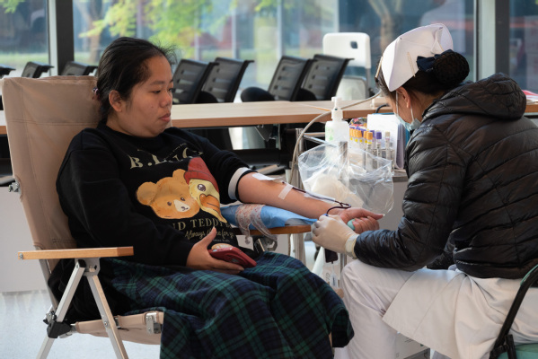 财务处助理处长杨盈每年都会关注学校的献血活动,这是她第三次参与献血。她表示“这是一件很有意义的事情,每次想到我的血液能捐给有需要的人,我就很开心”。
