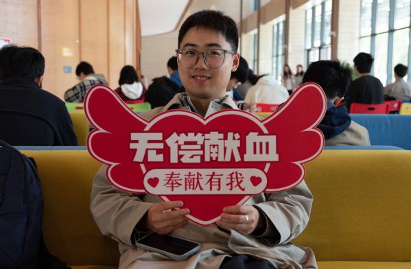 物质科学与技术学院教师吴诗韬今年选择献血400毫升。他表示,自己的身体状况还不错,希望多献点血能帮助到更多人。他也很愿意跟他人分享献血经历,他觉得“献血就是‘人人为我,我为人人’,传递的是互助互爱的精神。在自己可以帮助他人时能够尽绵薄之力,在自己需要援手时,也能得到帮助。”