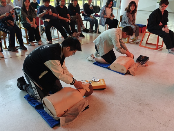3月25日下午,张江镇红十字会专业讲师团队在学生活动中心开展红十字急救实操培训。在完成4小时小程序线上理论学习后,三十名学员通过“理论讲解+实操演练+现场考核”三位一体教学模式,系统掌握急救核心技能。实操教学内容涵盖气道检查规范、胸外按压标准、AED使用技巧,以及头部、四肢等关键部位的创伤处理技术。