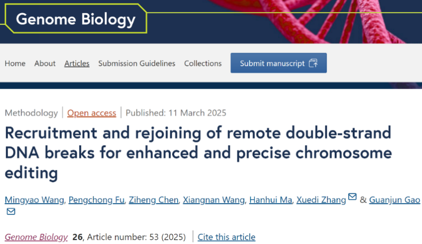 论文标题:Recruitment and rejoining of remote double-strand DNA breaks for enhanced and precise chromosome editing