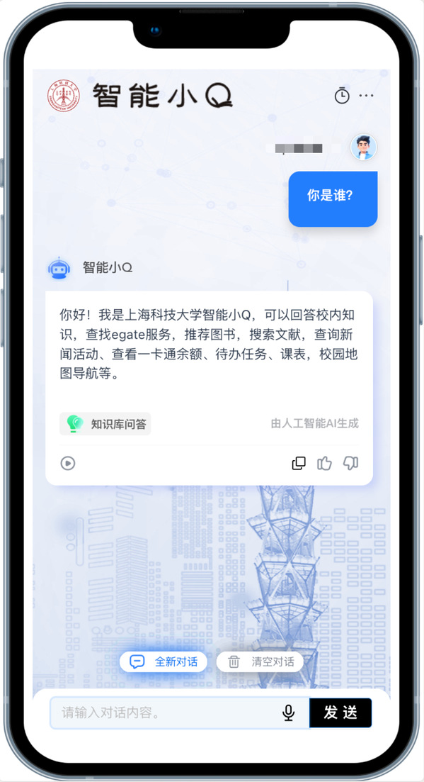 或者进入:https://genai.shanghaitech.edu.cn点击“智能小Q”。