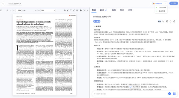 阅读中遇到专业名词,划词查询即时解释并关联更多资源。遇到问题,多模态问答支持文本和图片提问,还能智能推荐问题,引导用户逐步深入。简单高效,助力专注科研创新。