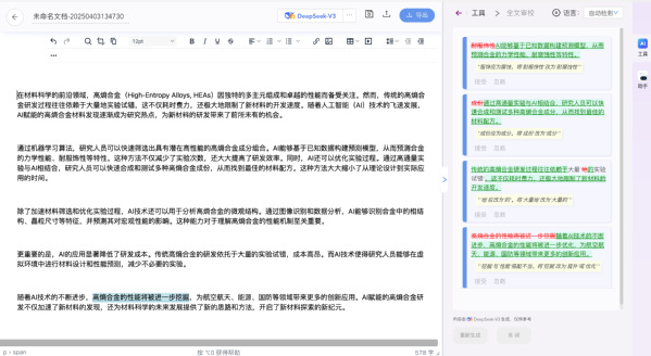 它不仅能逐句审校,将所有修正和优化建议高亮显示,方便直接插入原文,还能提供全文翻译、多风格重写、内容扩展、自定义改写等功能。支持多种格式文档上传,并兼容富文本格式的编辑与输出。