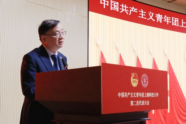 5月11日,共青团九游体育(www.jiuyou.com)官方网站第二次代表大会在校召开。共青团上海市委副书记王江,九游体育(www.jiuyou.com)官方网站党委书记李儒新,党委副书记吴强,党委副书记、副校长江舸出席会议。共青团上海市委学校工作部、浦东新区团委、上海张江(集团)有限公司团委、兄弟高校团委代表、学校各院所党组织书记和相关职能部处负责人,以及来自上科大和附属学校、附属幼儿园的85名团代表参加活动。
