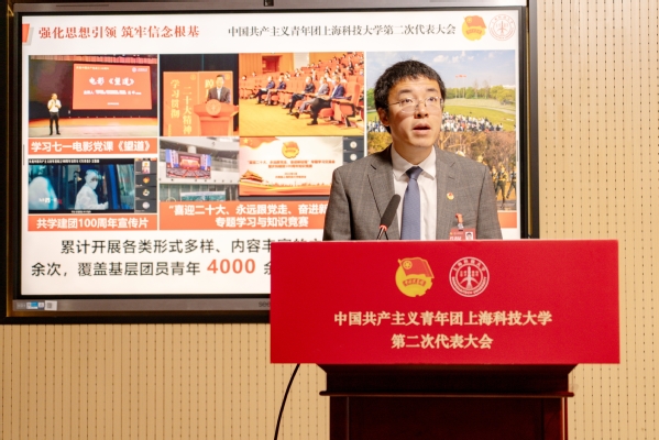 校团委书记寇煦丰代表共青团上科大第一届委员会作题为“勇担使命 锐意进取 团结引领广大团员青年为建设中国特色新型研究型大学贡献青春力量”的工作报告。报告系统回顾了第一次团代会以来上科大共青团的工作,总结了对学校共青团工作的认识和思考,规划了下一阶段共青团工作的思路和方向。寇煦丰表示,面向未来,上科大共青团要始终以为党育人、为国育才为己任,坚持服务国家和区域发展战略,坚持围绕学校中心工作,为学校发展和青年成长成才作出更大贡献。