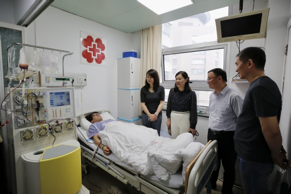 在造血干细胞采集当天,校党委副书记吴强前往复旦大学附属华山医院看望周文凯。在病房中,吴强代表学校向周文凯表达了慰问,对他捐献造血干细胞救助患者表示赞扬。周文凯的捐献善举不仅为患者点亮了生命的希望之光,也为上科大校园注入了温暖而强大的正能量,充分体现了上科大青年的责任与担当,为全校师生树立了榜样。上科大学生事务处、校团委和信息学院有关领导和老师陪同慰问。一同前往医院慰问的还有上海市红十字会、浦东新区红十字会以及周文凯高中母校上海市晋元高级中学的领导和老师。
