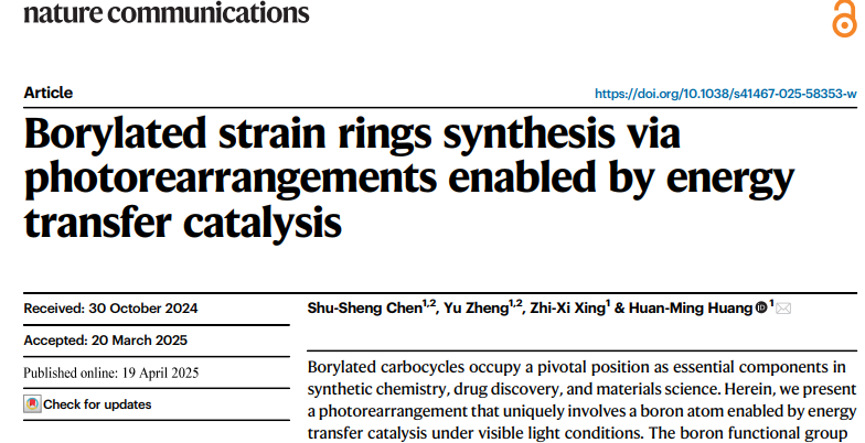 文章标题:Borylated strain rings synthesis via photorearrangements enabled by energy transfer catalysis